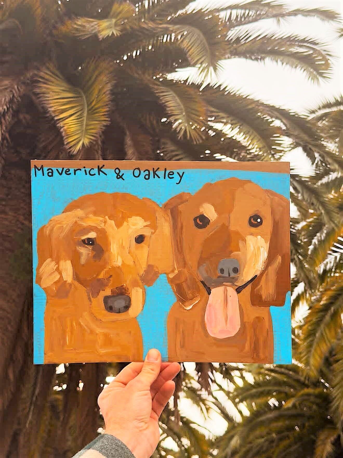 He had two golden retrievers. My favorite dogs. He asked for one painting with both of them. I was already happy just from that.