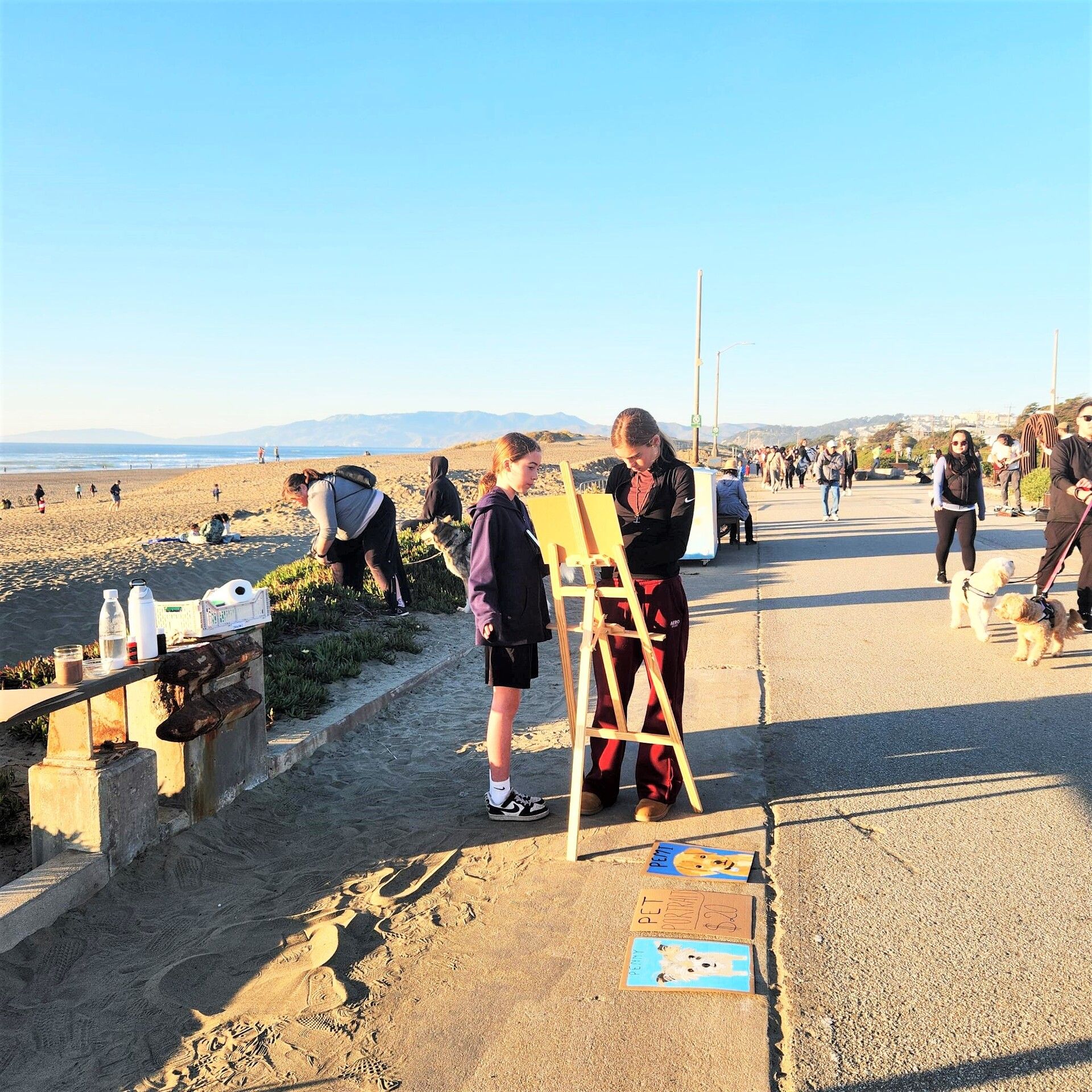 That same afternoon on the Great Highway, ANOTHER man with two golden retrievers stopped. Then a woman. One after the other. I painted, talked, took notes, and delivered the portraits over the next few days.