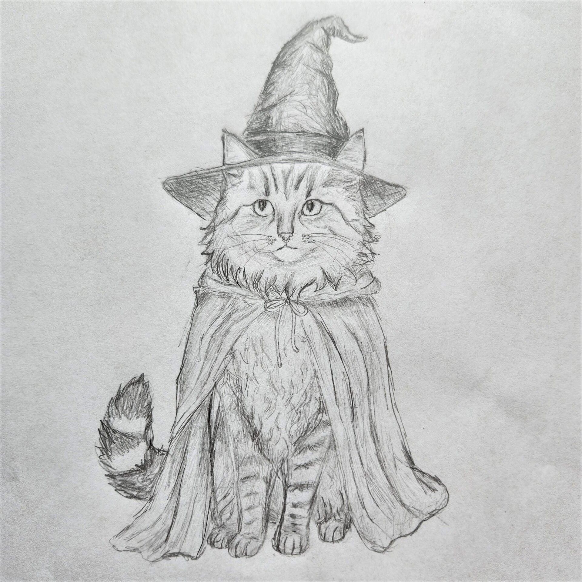 I spent a long time sketching the cat’s face to make sure it didn’t look crooked or awkward.